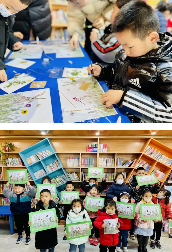 隨后,老師向大家介紹了手工押花的步驟以及相關材料,指導孩子們小心翼翼地將干花粘貼到畫板上,用春天的野花標本為小兔子創(chuàng)作一幅春天原野圖。