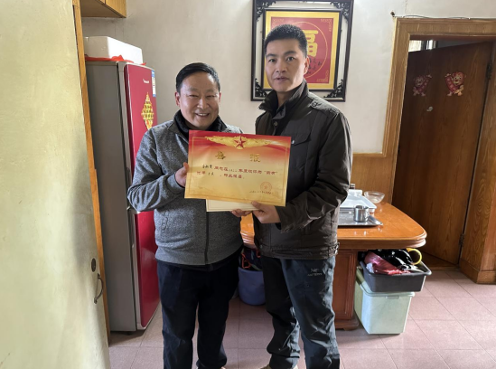 據(jù)悉,此次為李松賢第二次榮獲“四有”優(yōu)秀士兵,他還曾獲2020年度“四有”優(yōu)秀士兵。第二次將喜報(bào)送到家屬手中,袁書記仍激動(dòng)地向家屬表示熱烈地祝賀,感謝他們?yōu)閲?guó)家、部隊(duì)培養(yǎng)輸送了優(yōu)秀人才,鼓勵(lì)他們繼續(xù)關(guān)心支持孩子,讓他們的孩子在部隊(duì)安心服役,苦練軍事本領(lǐng),爭(zhēng)取再立新功。“孩子獲得的榮譽(yù)離不開部隊(duì)的精心培養(yǎng),離不開黨和政府的關(guān)心關(guān)懷,我們一定全力支持孩子為社會(huì)、為人民做更多的貢獻(xiàn)。”作為軍屬,李松賢父親的自豪感、榮譽(yù)感油然而生。