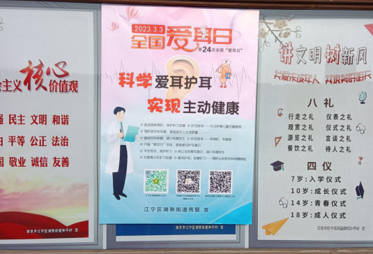 為了提高轄區(qū)居民愛耳護(hù)耳意識,減少聽力殘疾的發(fā)生,近日,南京市江寧區(qū)湖熟街道和平村開展“愛耳日”宣傳活動。