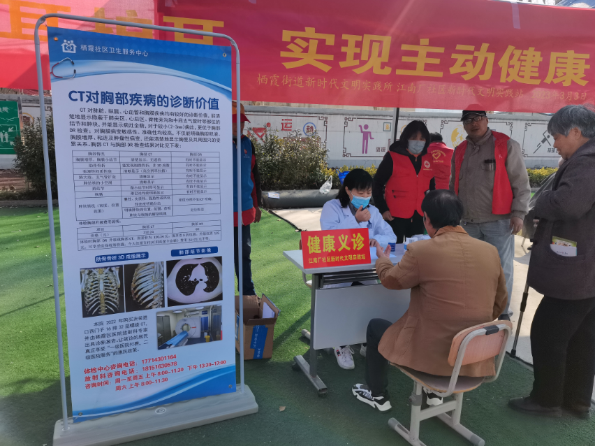 社區(qū)殘協(xié)的志愿者們?yōu)楝F(xiàn)場(chǎng)居民發(fā)放健康知識(shí)宣傳單頁,棲霞街道衛(wèi)生服務(wù)中心專業(yè)醫(yī)師有序地為現(xiàn)場(chǎng)居民群眾提供健康義診、疾病咨詢等志愿活動(dòng)。