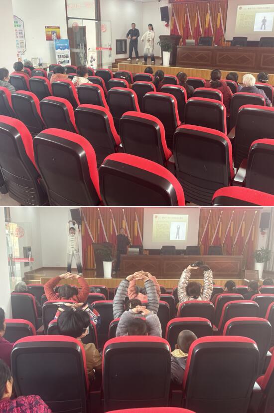隨后,趙老師根據(jù)居民們的基本情況,耐心地將八段錦的每一個動作、步法、手形及手法,逐一進行分解教學(xué),帶領(lǐng)大家實際操練了八段錦的招式,大家反響熱烈,拉著老師反復(fù)操練,取得了很好的健身效果。