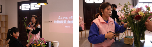 “活動(dòng)很輕松,我感受到了插花藝術(shù)的魅力,看到自己插的花兒就想著每一天都要好好生活呀!”社區(qū)居民陳女士開心地說道。