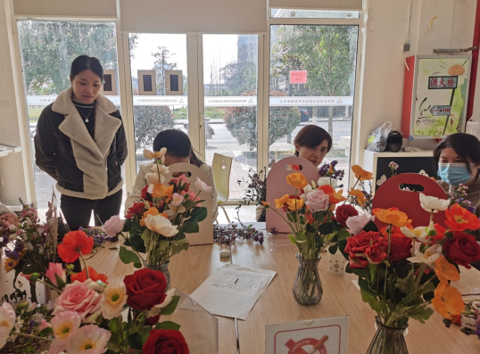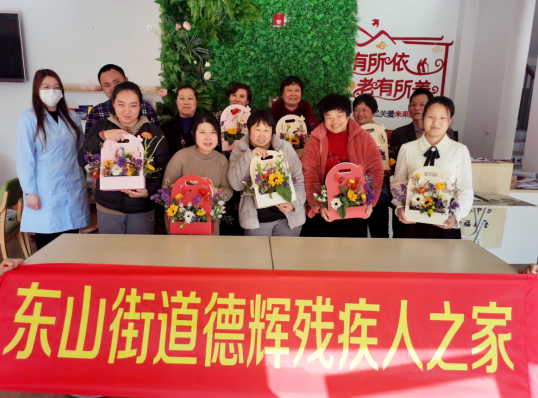 春天來(lái)了,美好的事都將如期而至,花香四溢,在這個(gè)暖意融融的春日,第113個(gè)“三八”國(guó)際婦女節(jié)即將來(lái)臨,為豐富南京市江寧區(qū)東山街道龍西社區(qū)殘疾人的精神生活,陶冶情操,展現(xiàn)亮麗風(fēng)采,3月6日下午,德輝殘疾人之家主辦——三八婦女節(jié)藝術(shù)插花主題活動(dòng),共計(jì)20余名殘疾人參加。德輝特邀花藝技師瀟瀟老師為現(xiàn)場(chǎng)殘疾人教授插花技巧,為生活增添一抹“靚色”。