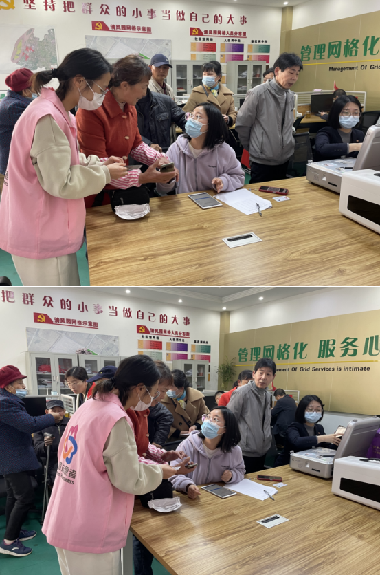 活動現(xiàn)場,社區(qū)工作人員積極協(xié)助銀行工作人員現(xiàn)場辦理社??ǎ瑹崆橹v解社??ㄞk理流程和注意事項,向居民宣傳第三代社??ǖ慕鹑诜?wù)、政務(wù)服務(wù)、公共服務(wù)、醫(yī)療健康等各項功能,指引居民依次進行信息采集、簽字、拍照、確認。辦卡過程中,針對居民的疑問和不懂的地方,工作人員也會一一細致耐心地為其解答疑問,獲得社區(qū)居民的一致稱贊和肯定。