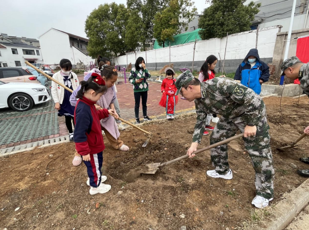 為倡導(dǎo)綠色發(fā)展生態(tài)文明理念,增強人們的環(huán)保意識,同時傳承革命精神,延續(xù)紅色基因,共筑愛國軍夢,讓第45個植樹節(jié)更具意義,南京市江寧區(qū)湖熟街道湖熟社區(qū)組織青少年們開展“種下綠色,關(guān)愛地球”植樹節(jié)活動,社區(qū)退役軍人先鋒隊參與其中。
