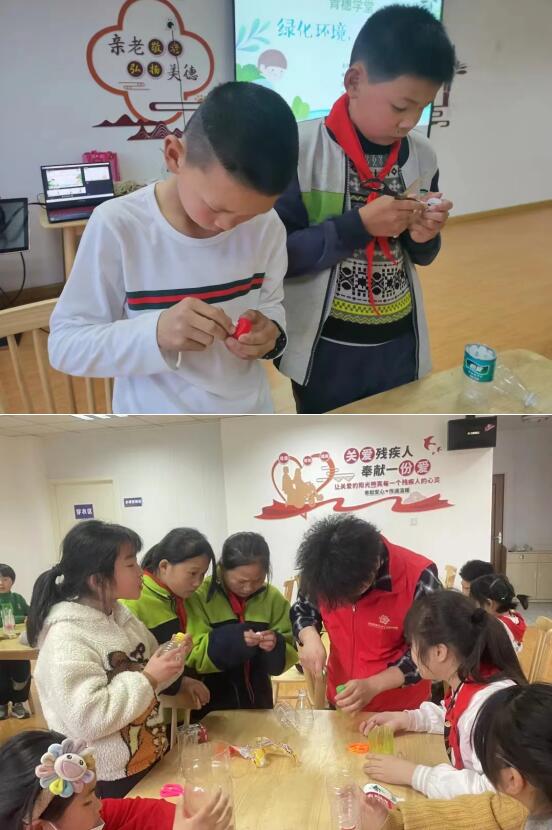 珍惜資源,保護資源,節(jié)約資源,人人有責。為了加深青少年們節(jié)約資源的意識,在老師的指導(dǎo)和帶領(lǐng)下,社區(qū)青少年們把撿拾回來的塑料瓶用剪刀剪成上下兩半,將瓶蓋處戳出小孔,倒著放進瓶子下半身,自制成一個個自吸水的花盆。有趣的制作過程讓青少年們對節(jié)約資源更加印象深刻,能夠帶動大家從現(xiàn)在做起,從我做起,從點點滴滴做起,珍惜地球賜予的一切自然資源,使家園年年春光燦爛。