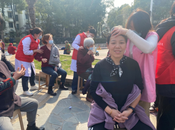 前期社區(qū)通過“掌上云”平臺(tái)發(fā)布活動(dòng)通知,讓更多的居民們參與志愿活動(dòng)的同時(shí)也便民其中。當(dāng)天下午兩點(diǎn)半,陽光明媚,微風(fēng)不燥,社區(qū)法治廣場(chǎng)熱鬧非凡,工作人員和積分志愿者們忙碌著搭建志愿服務(wù)臺(tái)?;顒?dòng)現(xiàn)場(chǎng)有來自馬群衛(wèi)生院的志愿團(tuán)隊(duì)為居民開展義診咨詢、量血壓、測(cè)血糖;口腔醫(yī)院的醫(yī)生現(xiàn)場(chǎng)進(jìn)行免費(fèi)口腔檢查,耐心講解牙齒日常保健、口腔疾病預(yù)防等方面的常識(shí);社區(qū)便民服務(wù)中心工作人員向居民發(fā)放《城鄉(xiāng)居民醫(yī)療保險(xiǎn)政策問答》宣傳手冊(cè),并現(xiàn)場(chǎng)為居民解疑答惑;轄區(qū)民警向居民發(fā)放非法集資、防范新型詐騙宣傳冊(cè),普及電信反詐知識(shí);街道司法所開展禁毒宣傳;轄區(qū)愛心志愿者林林發(fā)藝免費(fèi)理發(fā)、盲人藝師李俊現(xiàn)場(chǎng)免費(fèi)按摩、110指定專業(yè)配鎖師傅為居民配鑰匙,這些貼近居民生活的便民服務(wù)隊(duì)前更是排起了長(zhǎng)隊(duì);共建單位南京財(cái)經(jīng)大學(xué)新聞系志愿者清理宣傳櫥窗、各類小廣告等;鐘山學(xué)院的志愿者分成兩隊(duì),一隊(duì)幫老年居民修剪指甲,一隊(duì)在現(xiàn)場(chǎng)維持秩序。社區(qū)黨員志愿者、五老志愿者都積極參與。