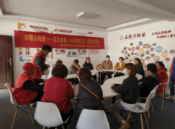 為豐富轄區(qū)黨員群眾精神文化生活,營造良好的全民閱讀氛圍,3月13日,南京市江寧區(qū)湯山街道建設村新時代文明實踐站開展“巾幗心向黨——紅色故事《閃閃的紅星》”閱讀分享會。