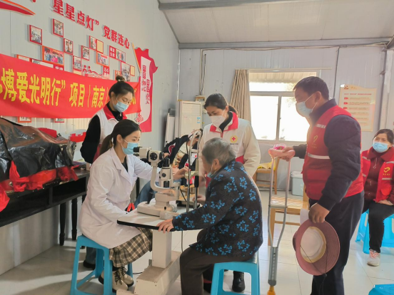 白內(nèi)障是一種常見高發(fā)眼科疾病,發(fā)病率高,致盲率也高,嚴(yán)重影響著人們身體健康和生活質(zhì)量,而且呈現(xiàn)年輕化趨勢。為了使轄區(qū)老人、殘疾人、其他視力障礙等各類人群能夠及時發(fā)現(xiàn)問題、盡早治療,3月16日上午,由江蘇省紅十字會、江蘇省衛(wèi)計委、南京醫(yī)科大學(xué)附屬眼科醫(yī)院聯(lián)合發(fā)起的“博愛光明行”公益行動走進(jìn)南京市棲霞區(qū)棲霞街道新合村,在新合小區(qū)居家養(yǎng)老室內(nèi)為村民開展免費白內(nèi)障及眼病篩查。