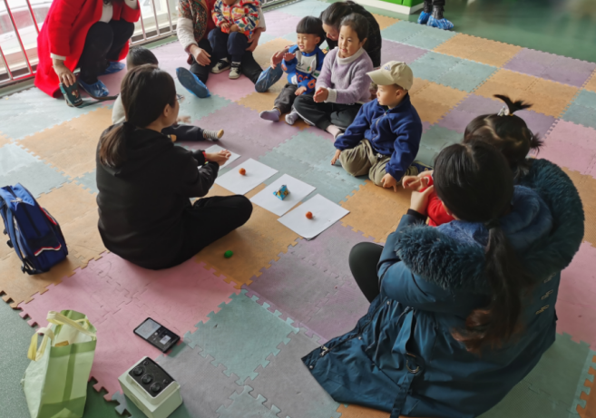 活動伴隨著美妙的《跟我一起轉(zhuǎn)轉(zhuǎn)轉(zhuǎn)》音樂拉開序幕,老師帶領親子家庭一起傾聽音樂、感受音樂,跟隨音樂進行律動,并引導大家相繼出示春游物品,用韻白方式說出春游物品。隨后,老師為親子家庭分發(fā)春游零食,并引導家長帶領幼兒一起探索物品,讓幼兒充分體驗感知手中的物品,鍛煉幼兒的觸覺和聽覺。面對著新奇游戲,大家全情投入,童趣十足,共同合作完成游戲任務,活動現(xiàn)場笑語連連。