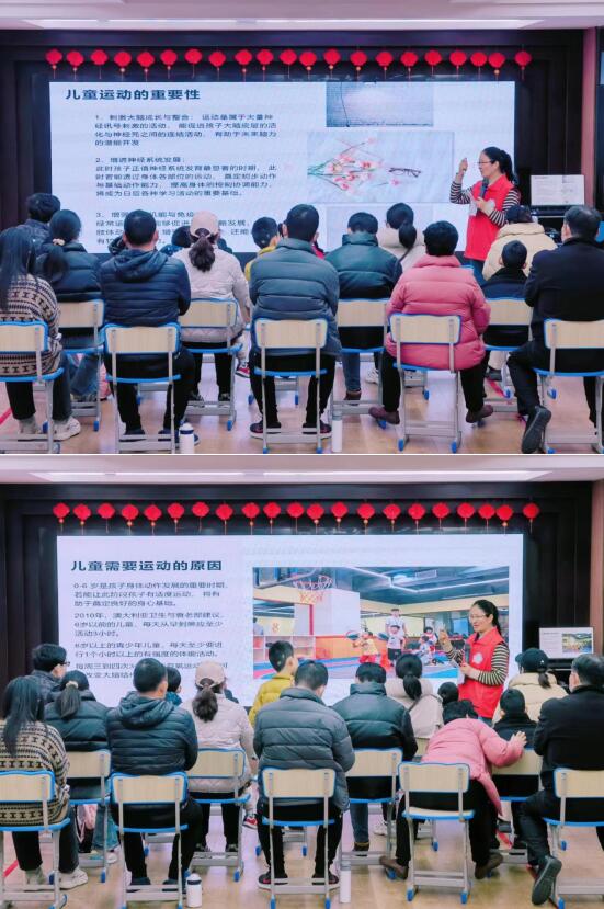 講座從兒童需要運(yùn)動的原因、兒童運(yùn)動的重要性、兒童的動作發(fā)展三方面詳細(xì)介紹了兒童運(yùn)動的重要性,強(qiáng)調(diào)了運(yùn)動對于兒童身體各方面的發(fā)展都有著重要的影響,能夠刺激大腦成長與整合、增進(jìn)神經(jīng)系統(tǒng)發(fā)展、增強(qiáng)身體機(jī)能與免疫力,此外,適當(dāng)?shù)倪\(yùn)動還有利于提升兒童情緒與社交能力、增進(jìn)親子關(guān)系、改善特殊兒童發(fā)展問題。講座還為家長們提供了一些實用的建議,如如何選擇適合兒童的運(yùn)動項目、如何讓兒童喜歡運(yùn)動、如何避免運(yùn)動中的安全問題等。家長們認(rèn)真傾聽,積極互動,取得了良好的效果。