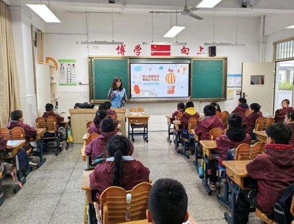 近日,在南京市檢察院第34次“檢察開放日”活動。本次活動由馬群街道關工委、馬群司法所關工委、青馬社區(qū)新時代文明實踐站、青春志愿同盟、太陽城小學、南京師范大學“廌行”普法服務隊聯(lián)合組織,于南京市人民檢察院開展。在參觀之前,“廌行”普法隊成員王玲艷向同學們開展了一堂主題為“深入檢察機關,領悟公平正義”的普法課堂。