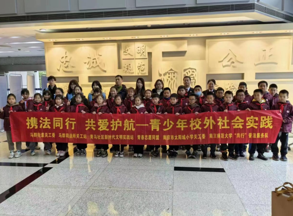 參觀游覽結束后,南京市人民檢察院的領導和工作人員和太陽城小學的老師和學生、青馬社區(qū)的工作人員以及普法隊的隊員到檢察院一樓大廳合影留念。南京市人民檢察院的領導表示,歡迎太陽城小學的學生和南師大法學院的同學再來檢察院參觀學習。臨別時,檢察官們真摯地祝福每一位太陽城的小朋友都可以茁壯成長,不負祖國的榮光!