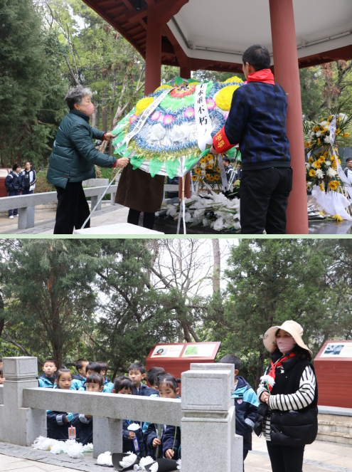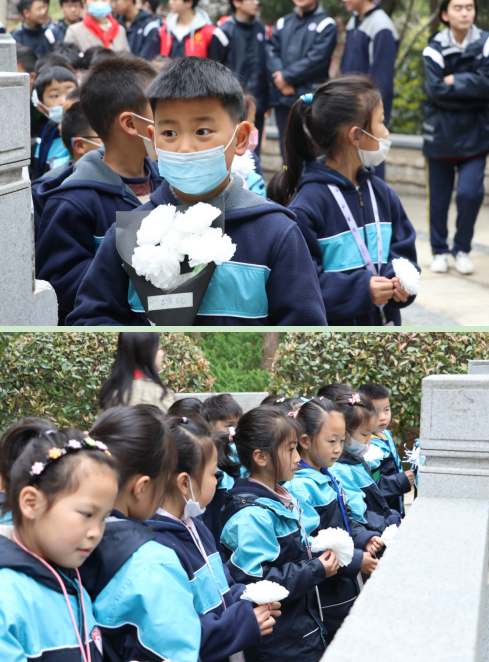 活動(dòng)現(xiàn)場(chǎng),莊嚴(yán)肅穆,全體成員在烈士墓碑面前向烈士默哀,實(shí)小副校長(zhǎng)陳勇、德育處厲登高進(jìn)行總結(jié)。隨后,在相關(guān)工作人員的帶領(lǐng)下,學(xué)生們向烈士敬獻(xiàn)花圈,整理挽聯(lián),向烈士三鞠躬,并繞陵墓一周,敬獻(xiàn)小白花。每個(gè)人都滿懷著對(duì)烈士的敬意和哀思,也表達(dá)著對(duì)烈士們“拋頭顱、灑熱血”愛(ài)國(guó)精神的崇高敬仰。