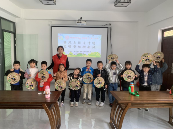 在制作清明節(jié)氣掛飾環(huán)節(jié),志愿者向小朋友們演示了制作步驟和方法,并指導(dǎo)小朋友們先思考構(gòu)圖,再通過裁、剪、串、粘等方法,用靈巧的小手做出一件件精美的掛飾。通過清明掛飾的制作,小朋友們也表達(dá)了對革命先烈以及我們故去的親人深深緬懷之情。