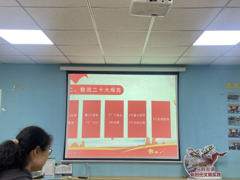 4月7日,棲霞區(qū)馬群街道果場社區(qū)第一網(wǎng)格黨支部依托社區(qū)新時(shí)代文明實(shí)踐站理論宣講服務(wù)平臺,組織社區(qū)第一網(wǎng)格黨支部黨員、社區(qū)工作人員在一樓實(shí)踐站文化陣地開展了“學(xué)習(xí)二十大 奮進(jìn)新征程”主題黨日活動,本次活動內(nèi)容由社區(qū)書記魏鵬同志擔(dān)當(dāng)宣講志愿者,宣講標(biāo)題為“九個(gè)數(shù)字讀懂二十大報(bào)告”。