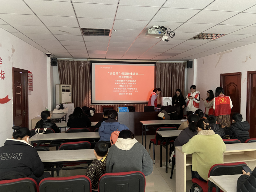 2023年4月9日上午,果場社區(qū)黨總支為民服務項目“齊益果”假期趣味課堂舉辦年度大型活動,馬群街道新時代文明實踐所、果場社區(qū)關工委、社區(qū)未成年人保護服務站大力支持,依托社區(qū)新時代文明實踐站教育服務平臺,聯(lián)合南師大物科院“向心力”志協(xié)一起,組織社區(qū)未成年人及其家庭、“齊益果”積分制志愿者、新業(yè)態(tài)新就業(yè)群體家庭等在社區(qū)三樓活動室開展了主題為“神奇的靜電”的科普類志愿服務活動。