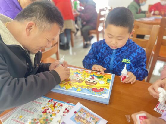 為了培養(yǎng)孩子們的動(dòng)手能力、創(chuàng)造能力,讓他們?cè)诋?huà)中學(xué)習(xí)到移風(fēng)易俗知識(shí),黨員志愿者分發(fā)紐扣畫(huà)的材料,并一步一步耐心講解具體的操作步驟,引導(dǎo)孩子們自己動(dòng)手制作。在家長(zhǎng)和孩子們的互相配合下,一幅幅色彩艷麗、知識(shí)豐富的紐扣畫(huà)便制作完成了。