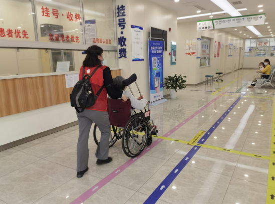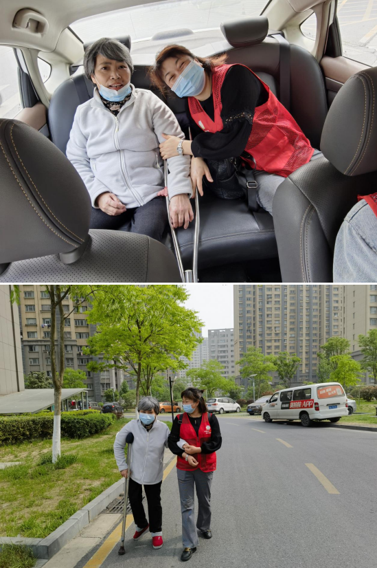 夏其花先預(yù)約了網(wǎng)約車,然后攙扶著朱鳳珠走出小區(qū),協(xié)助她坐上車前往醫(yī)院。一路上和朱鳳珠聊聊家常,逗得她喜笑顏開。到了醫(yī)院后給朱鳳珠租借了輪椅,再推著她奔走在各個(gè)科室之間,幫助她完成體檢。經(jīng)歷了1小時(shí)左右的體檢,夏其花再次打車送朱鳳珠安全回家,這次的上門服務(wù)就完成了。