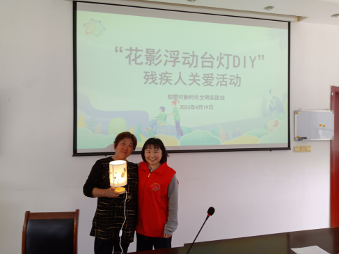 為了培養(yǎng)社區(qū)殘疾人群體的動(dòng)手能力,促進(jìn)了殘疾人群體更好地融入社會(huì),提升他們的幸福指數(shù),4月19日,江寧區(qū)淳化街道柏墅村開展“花影浮動(dòng)臺(tái)燈DIY”殘疾人關(guān)愛活動(dòng)。