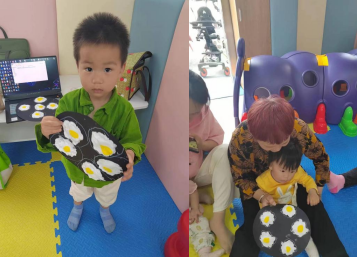 現(xiàn)場(chǎng),老師首先把彩色超輕黏土拿出來(lái),讓孩子們學(xué)習(xí)各種各樣的顏色,然后給孩子展示荷包蛋的圖片,告訴孩子今天做荷包蛋會(huì)用到哪些顏色,并讓孩子們發(fā)揮想象力,學(xué)習(xí)用各種各樣的顏色制作荷包蛋,在志愿者的帶領(lǐng)下,孩子們很快完成了作品,互相交流展示。寶貝們?cè)诰实挠螒蛑畜w驗(yàn)到與同伴、家長(zhǎng)手工制作的快樂(lè),同時(shí)也培養(yǎng)了萌寶們色彩的搭配和敢于嘗試的勇氣。