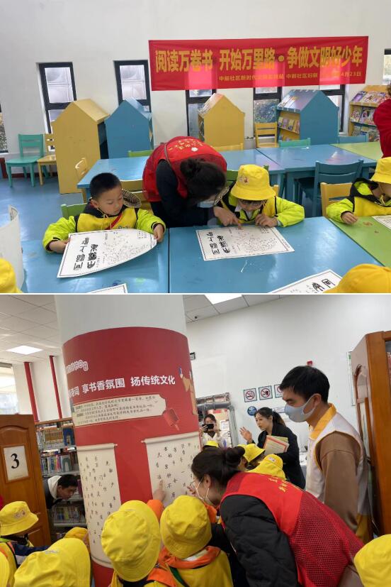 4月23日是世界讀書日,為豐富社區(qū)青少年文化生活,進(jìn)一步引導(dǎo)青少年養(yǎng)成健康的閱讀習(xí)慣,營造良好的閱讀氛圍。南京市江寧區(qū)東山街道中前社區(qū)新時代文明實踐站聯(lián)合江寧圖書館,帶領(lǐng)轄區(qū)內(nèi)幼兒園青少年開展“閱讀萬卷書 開始萬里路 爭做文明好少年”全民閱讀主題活動。
