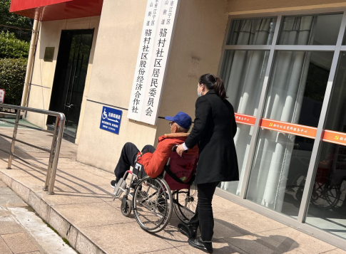 對于殘疾人居民,志愿者主動上門用輪椅將他們推到活動現(xiàn)場,全程陪伴他們進行一系列檢查。在陪診過程中,志愿者了解他們近期的生活情況,鼓勵他們用積極的心態(tài)面對生活。