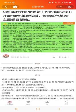 為發(fā)揮化纖新村社區(qū)“掌上云”功能和優(yōu)勢,繼承和弘揚黨的光榮傳統(tǒng)和優(yōu)良作風(fēng),近日,南京市棲霞區(qū)燕子磯街道化纖新村社區(qū)通過“掌上云”平臺發(fā)布信息,邀請轄區(qū)黨員積極參與5月6日“緬懷革命先烈 傳承紅色基因”主題黨日活動。
