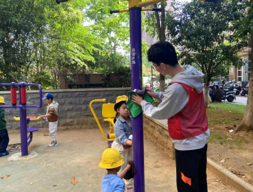 整個勞動過程中,志愿者和小朋友分工明確,團結(jié)合作,大家干得熱火朝天,每個人都充分彰顯了“勞動小模范”那種不怕臟、不怕累的吃苦精神。在大家的共同努力下,小區(qū)里的健身器材被擦拭的煥然一新,休閑亭房也變得一塵不染。此次活動的開展,不僅增強了小朋友們尊重勞動、熱愛勞動的意識,而且使他們感受到了勞動的辛苦,體驗到了勞動的快樂。