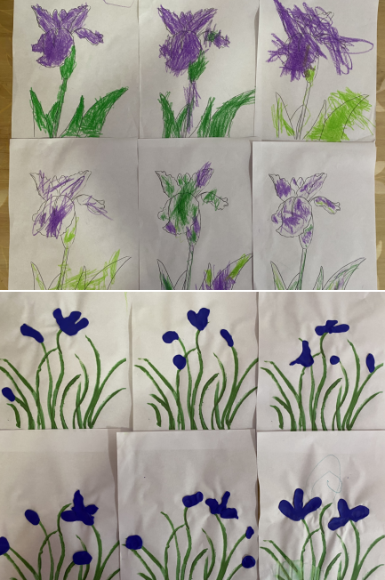 五月,鳶尾花開得正盛,陽光照耀下顯得格外鮮艷,猶如一只只翩翩起舞的蝴蝶。微風(fēng)拂過,紫色“波浪”輕輕搖曳,美不勝收。孩子們仔細(xì)地觀察花瓣的顏色,還有葉子的形狀,并選擇自己喜愛的方式記錄植物,有的為鳶尾花的線描圖添上顏色,有的用超輕黏土在有葉子的圖中添上鳶尾花,在志愿者老師的帶領(lǐng)下,大家一同體會(huì)生命成長的可貴。最后,大家開心地展示作品,分享喜悅。