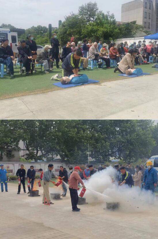 活動現(xiàn)場,社區(qū)工作人員向居民們講解了消防滅火器的正確使用方法以及在發(fā)生火災事故后的自救逃生等知識,演示了如何正確滅火、如何用濕毛巾捂住口鼻、如何在火場中撥打報警電話,并詳細介紹了如何進行人工呼吸和心肺復蘇等急救知識,帶領全體人員進行逃生、滅火、急救演練。