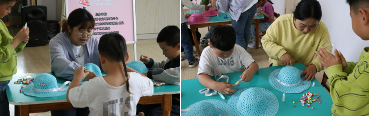 活動現(xiàn)場精彩紛呈,教師組織學(xué)唱感恩母親的歌曲《燭光里的媽媽》、《感恩的心》、《世上只有媽媽好》等,學(xué)生們充滿熱忱表達(dá)了對母親的愛與感激。隨后,大家分別分享生活中母親對自己點點滴滴的關(guān)愛,讓孩子們體會母愛的偉大,孩子們紛紛表示在以后的生活中將時常對自己的媽媽表達(dá)愛意,哪怕是一句簡單的“媽媽,我愛你”。緊接著,老師給大家分發(fā)手工編織夏日禮帽小物件,為大家一邊講解一邊示范制作過程,大家相互協(xié)作,一步步跟著老師的示范進(jìn)行制作,剪裁、折疊、粘貼......憑借個人對美的理解和對母親的愛,發(fā)揮出自己的想象制作出了屬于自己獨一無二的夏日禮帽。