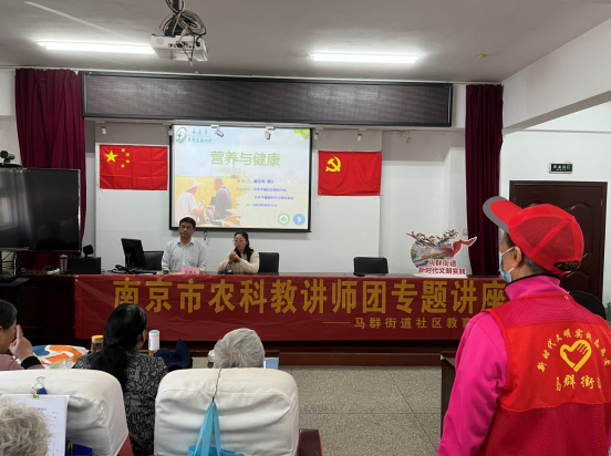 本次講座由南京市農(nóng)科教講師團(tuán)的顏老師為現(xiàn)場50余名退休人員講解營養(yǎng)與膳食的健康知識,顏老師重點(diǎn)提到老年人應(yīng)每天攝入的食物要多樣,要以谷類食物為主,粗細(xì)搭配,多吃蔬菜,水果和薯類食物,常吃魚、禽、蛋、瘦肉,少鹽、少油等等,日常生活中不僅要合理飲食,還要堅(jiān)持體育鍛煉,更要做到飲食與運(yùn)動相結(jié)合。