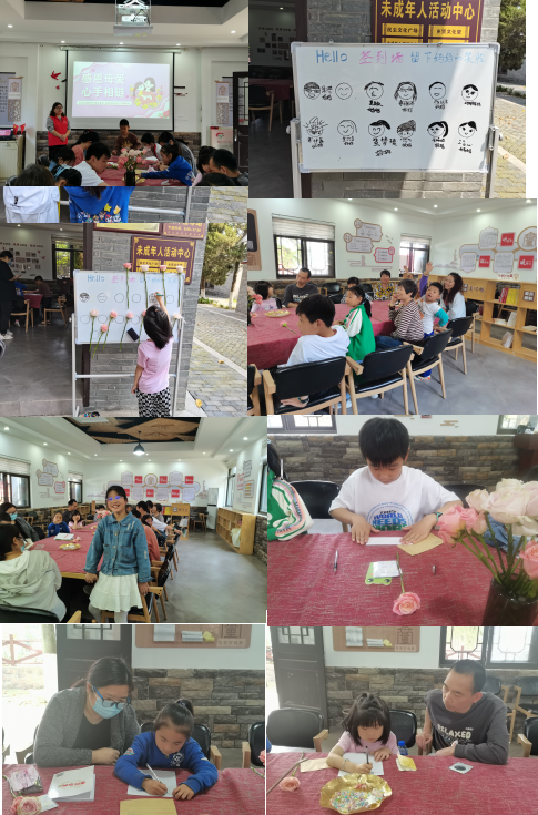 社工還給小朋友們提供信紙信封,讓他們寫下想對媽媽說的話,小朋友們在信紙上寫下了“媽媽,我愛你”、“我會好好照顧您”、“媽媽,辛苦了!”等發(fā)自肺腑的感人語句。