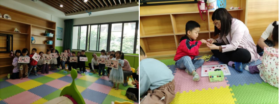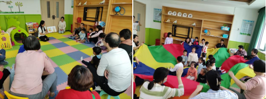 “老師早上好!”“小朋友們早上好!”經(jīng)過元氣滿滿的問好,小朋友們輪流自我介紹,讓活動現(xiàn)場的氛圍變得更加熱鬧。音樂律動《學而樂體操》《小貓操》和走線閱讀《我媽媽》環(huán)節(jié)中,小朋友們既鍛煉了身體,又鍛煉了思維能力。手指游戲《我的好媽媽》、手工花、膝上童謠、吹泡泡等游戲也獲得了小朋友們和家長們的熱烈歡迎,在游戲交流中,小朋友們和家長們的感情也得到了升華。