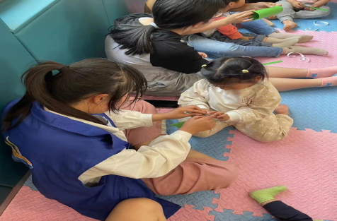 活動(dòng)中,楊柳湖社區(qū)網(wǎng)格員張寧和社工站工作人員與參加活動(dòng)的9組親子家庭一起做青蛙口袋折紙游戲,鍛煉寶寶的動(dòng)手能力增加親子感情。檢驗(yàn)家長(zhǎng)與孩子們之間的配合度和默契度,促進(jìn)親子間的交流與互動(dòng)。
