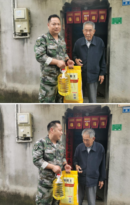 西城村退役軍人服務站、西城民兵營以及網格員帶著油、米、洗發(fā)水、牙膏等食物和日用品來到許爺爺家中。網格員對許爺爺近期身體狀況進行了詢問,了解他在平時是否有高血壓、高血糖、高血脂等常見老年疾病,并叮囑許爺爺注意天氣變化,及時增減衣服,養(yǎng)成飲食規(guī)律的良好生活習慣,如有困難和問題及時跟網格員聯系,要照顧好自己的生活,保持樂觀的心態(tài)。許爺爺也拉著退役軍人服務站的志愿者們嘮家常,許爺爺給他們講述了他年輕時參軍時的英勇事跡,志愿者們告訴許爺爺如今我們國家已發(fā)展成軍事強國,對他曾經為國家做出的貢獻表示由衷感謝。