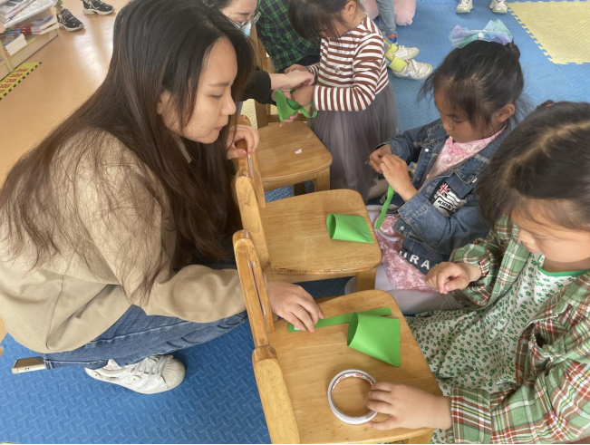 活動現場,老師為參與活動的小朋友們準備了繪本閱讀、學唱歌、小游戲及手工制作環(huán)節(jié)。在老師的引導下,小朋友們漸漸打開心扉,跟隨著老師的步伐,一起思考繪本里的主人公為什么會得到大家的喜愛,一起感受音樂的節(jié)奏與力量,互相競賽、努力完成游戲任務,一起制作完成小青蛙紙袋。在不同的活動環(huán)節(jié)中,小朋友們充分感受、體驗和探索,大大豐富了對不同事物的認知,拓寬了小朋友們的視野?;顒蝇F場氣氛輕松活潑,到處充滿了歡聲笑語。同時,老師們還對家長們進行了科學育兒的指導,家長紛紛表示受益匪淺。