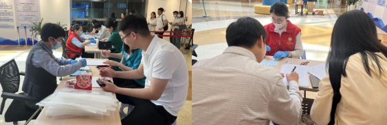 上午七點(diǎn),登記結(jié)婚的準(zhǔn)新人們已經(jīng)來到了江寧區(qū)市民中心北門,工作人員早早的就在材料審核處等待,有條不紊對結(jié)婚登記當(dāng)事人出具的證件、證明材料進(jìn)行審查并詢問是否帶齊。新人們向工作人員提交戶口簿、身份證原件,隨后等待工作人員審核,并填寫《婚姻登記告知單》《婚姻登記個(gè)人信用風(fēng)險(xiǎn)告知書》等一系列資料,通過工作人員的指引,按照要求進(jìn)行簽字并有序排隊(duì)等待婚檢。