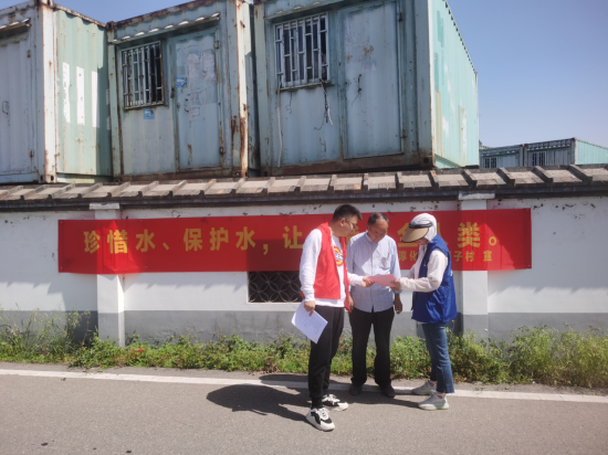 活動中,周子村新時代文明實踐志愿者聯(lián)合網(wǎng)格員在轄區(qū)醒目位置張貼橫幅,并向村民發(fā)放保護河湖倡議書,向村民講解了飲用水源地現(xiàn)狀和水體污染可能引發(fā)的嚴重后果等科普知識,引導大家進一步規(guī)范自己的行為。同時,志愿者和網(wǎng)格員還向村民發(fā)放調(diào)查問卷,了解村民對保護河湖的措施、法律法規(guī)等方面的知曉程度。