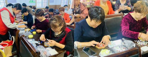 活動(dòng)最后,志愿者帶領(lǐng)婦女們進(jìn)行手工制作。志愿者先講解了制作馬賽克杯墊的流程和制作時(shí)的注意事項(xiàng),大家都迫不及待的打開(kāi)包裝材料,相互出謀劃策、參考學(xué)習(xí),用心地制作這份獨(dú)一無(wú)二的工藝品。大家將色彩鮮艷的馬賽克碎片粘制起來(lái),再用透明白膠將縫隙填充。時(shí)光轉(zhuǎn)瞬即逝,一個(gè)個(gè)造型別致、美觀實(shí)用的馬賽克杯墊在居民們的巧手下完美呈現(xiàn)。