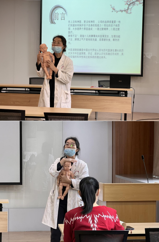 隨后,夏老師針對家長們提出的疑問認(rèn)真詳細(xì)地從專業(yè)的角度為大家解答,根據(jù)嬰幼兒日常生活中常見的感冒、發(fā)燒、腹瀉等病癥進(jìn)行分類講解不同的推拿手法。家長們紛紛表示在此次講座中收獲滿滿,以后在日常生活中遇到這些問題都可以更冷靜去面對解決。