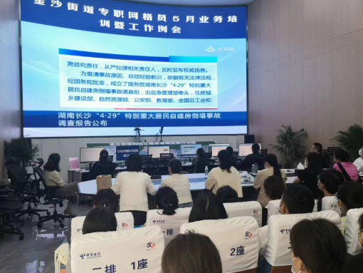 金沙街道定期召開安全生產(chǎn)工作專項會議,向街道全體機關(guān)干部、村(社區(qū))工作人員、網(wǎng)格員傳達學習中央、省、市關(guān)于安全生產(chǎn)工作的部署要求。5月30日,街道現(xiàn)代化指揮中心召開網(wǎng)格員月度業(yè)務培訓工作例會,通報《湖南長沙“4.29”特別重大居民自建房倒塌事故調(diào)查報告》,分析研判網(wǎng)格員們應當在安全生產(chǎn)工作中起的作用和承擔的責任,并就下一步安全生產(chǎn)工作進行細化部署,夯實責任、明確目標任務,全力防范化解各類安全風險隱患。