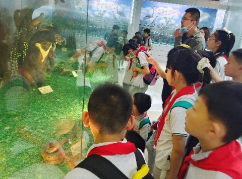 本次活動中,太陽城小學(xué)的同學(xué)們在志愿者的帶領(lǐng)下來到南京林業(yè)大學(xué),分小組依次參觀了木材標本館、樹木標本館、動物標本館以及校史館。