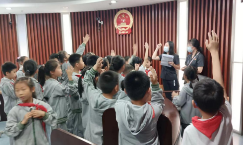 法官向?qū)W生們介紹了法院的法治理念,講解有關(guān)公平公正、司法為民的故事,講解員向?qū)W生們普及法律小知識,學(xué)生積極回答贏得小獎品,司法警察的嚴(yán)肅著裝也讓孩子們體會到法院的莊嚴(yán)與肅穆。