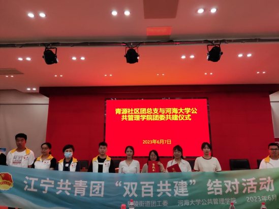 為促進(jìn)“高校+社區(qū)”服務(wù)惠及更多社區(qū)居民,6月7日,河海大學(xué)公共管理學(xué)院團(tuán)委與南京市江寧區(qū)秣陵街道青源社區(qū)團(tuán)總支舉辦聯(lián)建共建儀式,此次共建旨在建立學(xué)校、社區(qū)聯(lián)動(dòng)的團(tuán)學(xué)新格局,也是共同推進(jìn)優(yōu)勢(shì)資源共享共贏機(jī)制的首次嘗試。河海大學(xué)公共管理學(xué)院團(tuán)委書(shū)記與2名大學(xué)生團(tuán)員志愿者、青源社區(qū)團(tuán)總支書(shū)記與10名團(tuán)員志愿者參加了此次共建活動(dòng)。