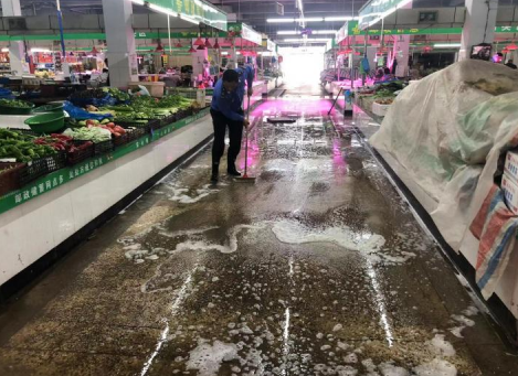 持續(xù)開展農(nóng)貿(mào)市場(chǎng)環(huán)境“大清洗”,定期組織人員對(duì)農(nóng)貿(mào)市場(chǎng)出入口、過道、下水道等區(qū)域衛(wèi)生死角、地面臟污進(jìn)行沖洗,同時(shí)對(duì)農(nóng)貿(mào)市場(chǎng)周邊“夜市”內(nèi)部環(huán)境衛(wèi)生進(jìn)行清理,及時(shí)糾正各類違規(guī)行為。