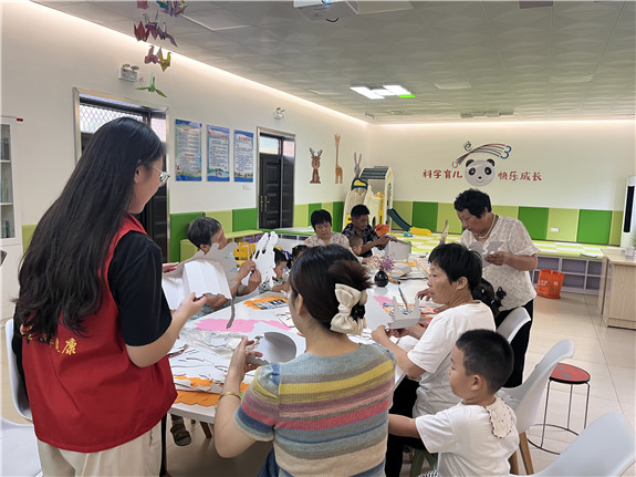 在女性手工活動(dòng)環(huán)節(jié),社工引導(dǎo)媽媽和孩子們將手工材料分類(lèi)整齊,一起參與到手工作品制作中。在手工制作中多數(shù)孩子們躍躍欲試,在媽媽的指導(dǎo)下認(rèn)真制作,既體現(xiàn)童真童趣也體現(xiàn)出母親的智慧,促進(jìn)親子感情交流。手工環(huán)節(jié)讓母親同孩子一起,動(dòng)手、聊天、享受美好,度過(guò)親昵美好的上午時(shí)光。
