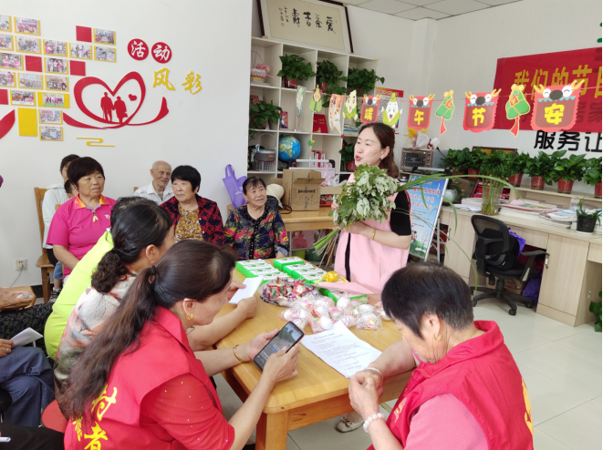 活動(dòng)開始前,工作人員首先給村民們講解了端午節(jié)的傳統(tǒng)習(xí)俗以及蛋兜的來源,大家聽得聚精會(huì)神?;顒?dòng)現(xiàn)場設(shè)置了很多與端午節(jié)有關(guān)的趣味游戲,手指操、快板、船來了、情景劇《端午節(jié)的由來》......一個(gè)個(gè)趣味游戲惹得大家歡聲笑語不斷,現(xiàn)場氣氛非常熱烈。簡簡單單的游戲,承載著許許多多的快樂,一陣陣歡聲笑語為節(jié)日添上了一抹溫情。