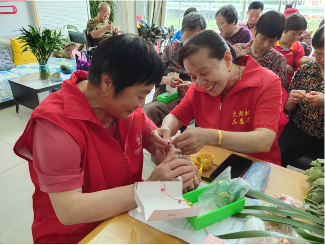 “蛋兜”是中華文明的傳承,端午節(jié)送蛋、掛蛋袋的習(xí)俗已延續(xù)兩千多年,在場村民們個(gè)個(gè)躍躍欲試,動(dòng)手制作自己的蛋兜。大家互相交流、認(rèn)真專注,全身心投入到手工編織中,五彩的絲線在手中翻飛,不一會(huì)兒,一個(gè)個(gè)漂亮的蛋兜就編好了,既放松了大家的身心,又增添了無限樂趣,營造了濃厚的節(jié)日氛圍。隨后,大家把鴨蛋連同“逢兇化吉、平安無事”的美好愿望裝進(jìn)蛋袋里,寄托美好的祝福?;顒?dòng)最后,工作人員把準(zhǔn)備好的香包、五彩手環(huán)、鴨蛋分發(fā)給現(xiàn)場村民,為他們送去節(jié)日的問候。